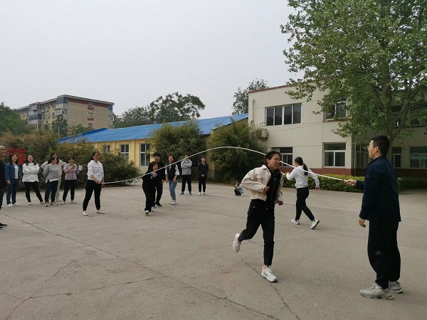 最后的集体跳绳分为2队,每队8人,其中2人摇绳,6人跳绳,跳绳队员依次跳过,两分钟内根据跳过次数的多的队伍胜出。