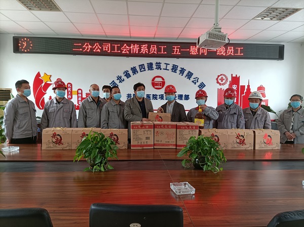 五一劳动节到来之际,二分公司一直挂念着奋战在项目施工一线的职工。4月30日上午,分公司工会主席孙立锋一行代表分公司到石家庄井陉县医院项目,看望慰问项目职工,为奋战在施工一线的职工送上节日慰问品和祝福。
